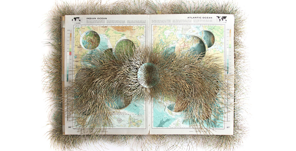 Cette artiste sud-africaine cherche et chine tous les livres désuets – magazines, encyclopédies obsolètes et autres ouvrages non voulus – et en ressort avec une pile de mots et de phrases imprimés. Mais elle leur donne une autre vie sous une forme de sculpture. En effet, avec du découpage et du collage, elle en ressort un art subtil et gracieux. Dit ainsi, cela peut sembler simple au premier abord : mais c'est par une construction de photos et de papiers qu'elle met ces ouvrages en valeur. Ils font peau neuve sous une forme architecturale structurée et tortueuse à la fois, et suivant divers thèmes.